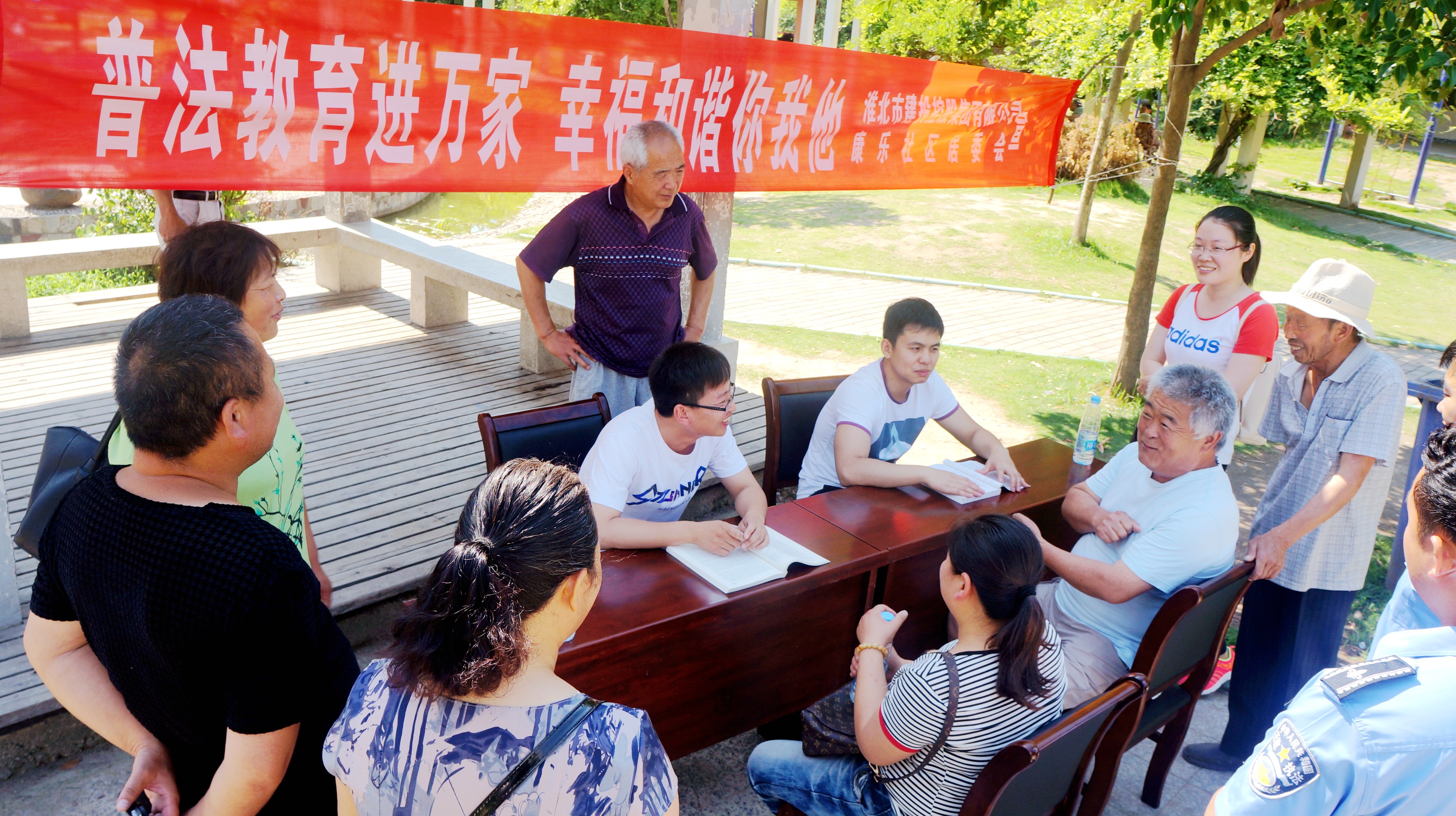 6月17日上午,在康樂(lè)社區(qū)大華新家園小區(qū)內(nèi),居民張大爺早早的來(lái)到小區(qū)涼亭,想就他最近遇到的煩心事尋求解決辦法。當(dāng)天上午,淮北市建投集團(tuán)法律部和群團(tuán)工作部的工作人員正為結(jié)對(duì)幫扶的康樂(lè)社區(qū)提供免費(fèi)的法律咨詢服務(wù)。