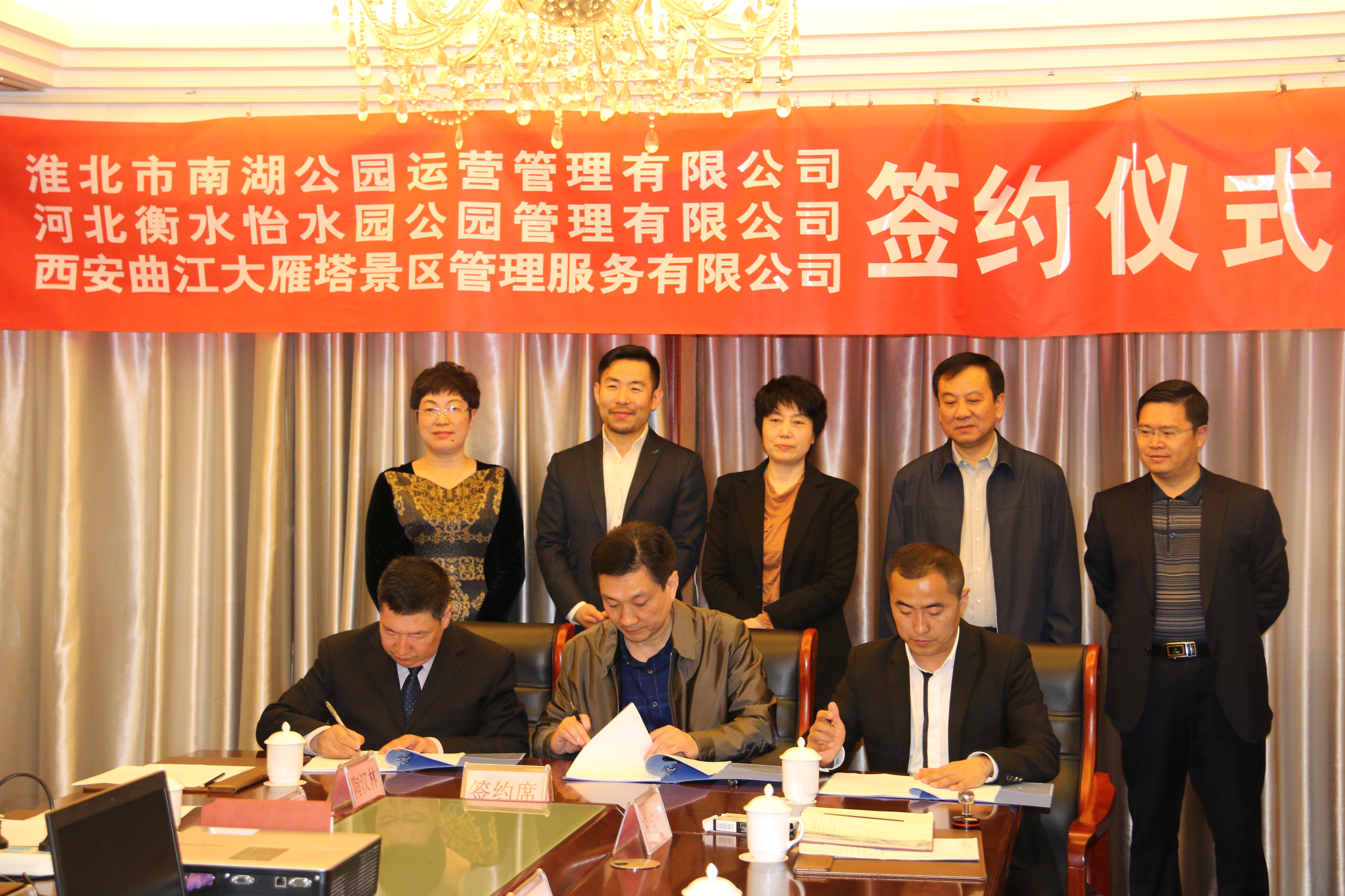 4月7日上午,南湖公園運(yùn)營管理有限公司、河北衡水怡水園公園管理有限公司、西安曲江大雁塔景區(qū)管理服務(wù)有限公司就南湖景區(qū)托管項(xiàng)目舉行了簽約儀式。市政協(xié)副主席錢丹嬰等出席儀式并見證簽約。