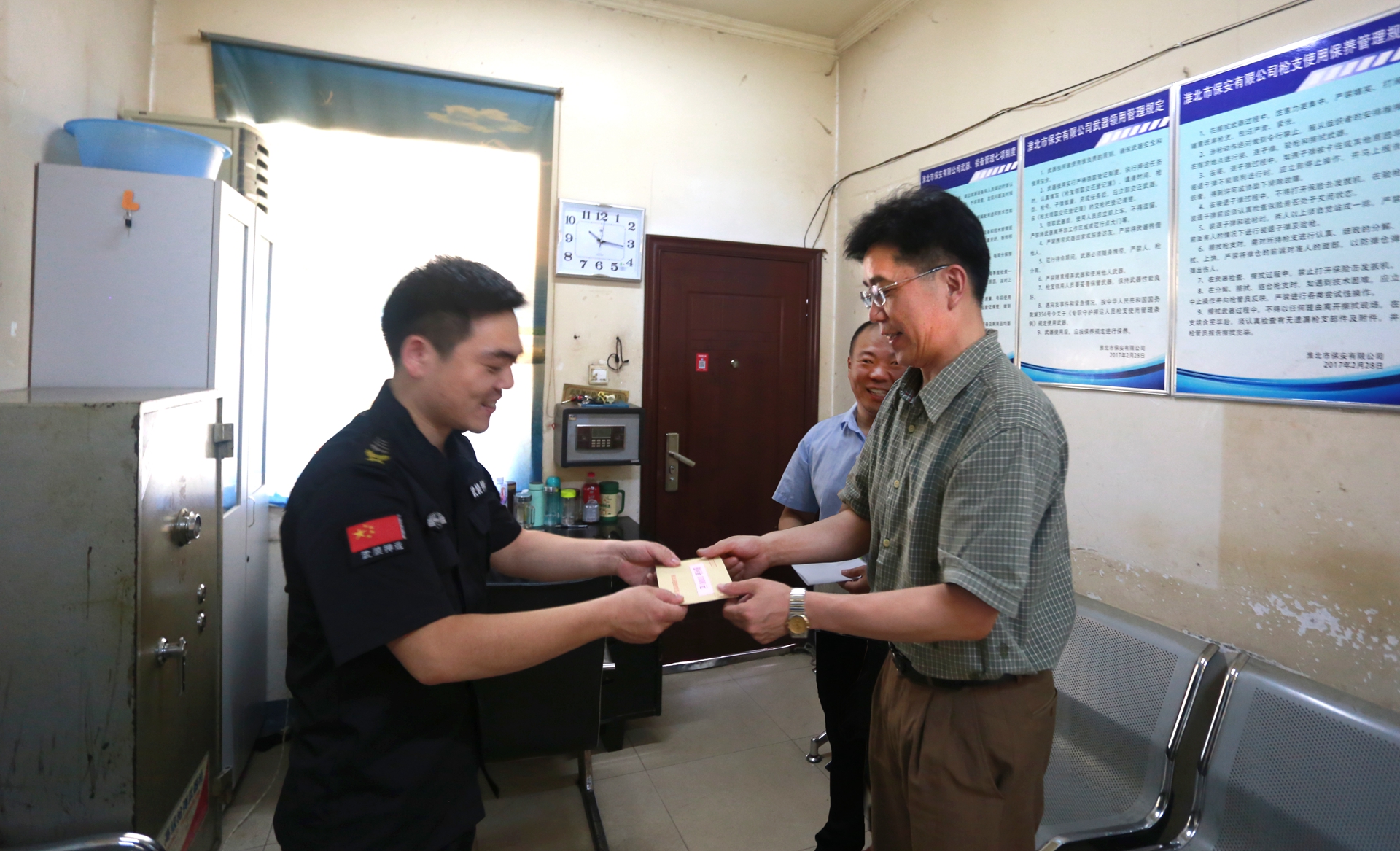 為了讓貧困黨員感受到集團(tuán)公司大家庭的關(guān)懷和溫暖,7月13日上午,集團(tuán)公司黨委委員、紀(jì)委書記王獻(xiàn)忠和法律部副部長余永明來到保安公司押運(yùn)一中隊,為貧困黨員送去慰問金和祝福。